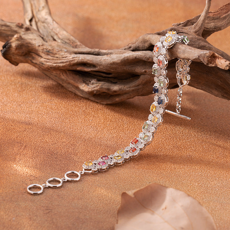 Embrace a spectrum of elegance with our stunning Natural Colorful Sapphire Bracelet. Meticulously crafted for the modern woman who appreciates unique beauty, this piece features a captivating collection of all-natural sapphires in a delightful array of colors, each stone telling its own story. Set in premium S925 Sterling Silver, this bracelet is more than just an accessory—it's a personal treasure and a timeless gift of refined style.